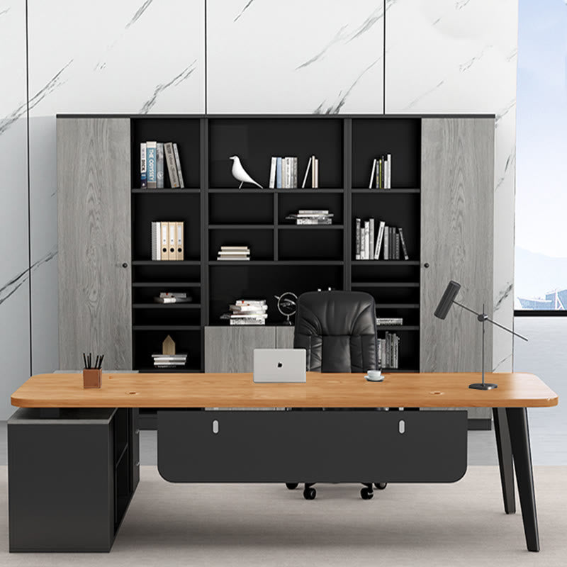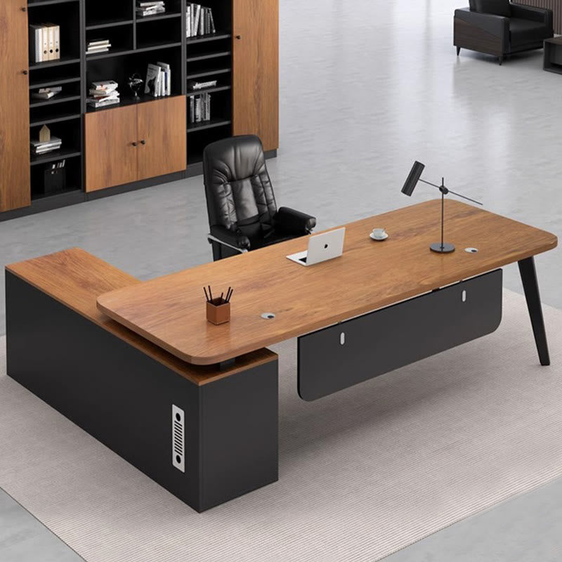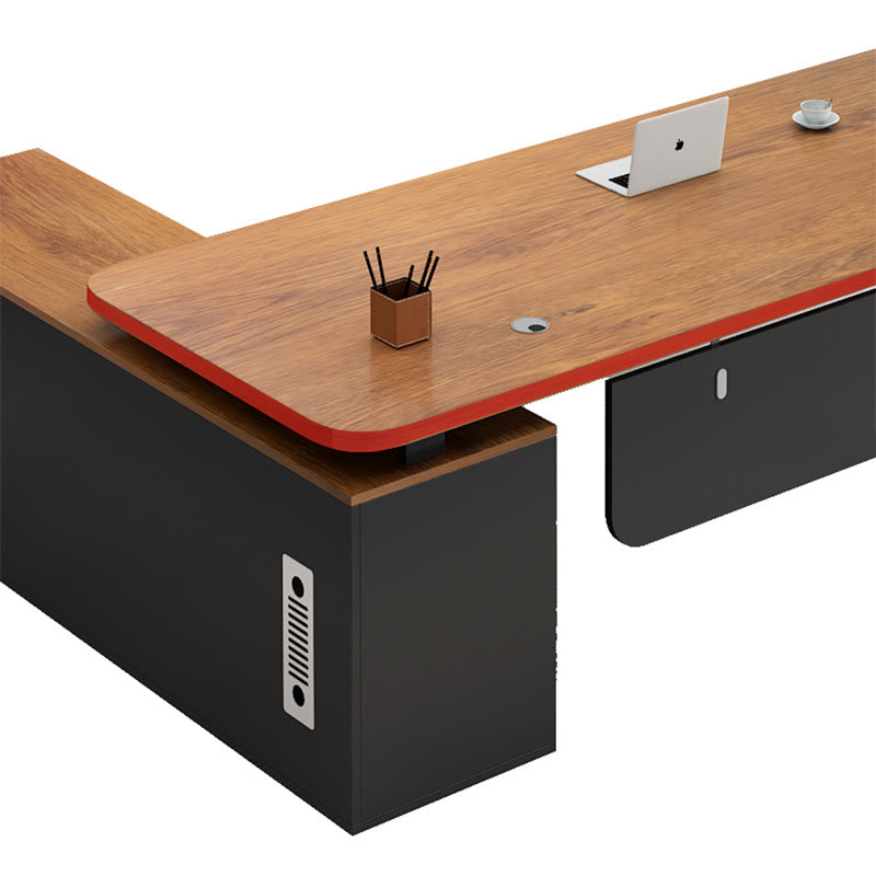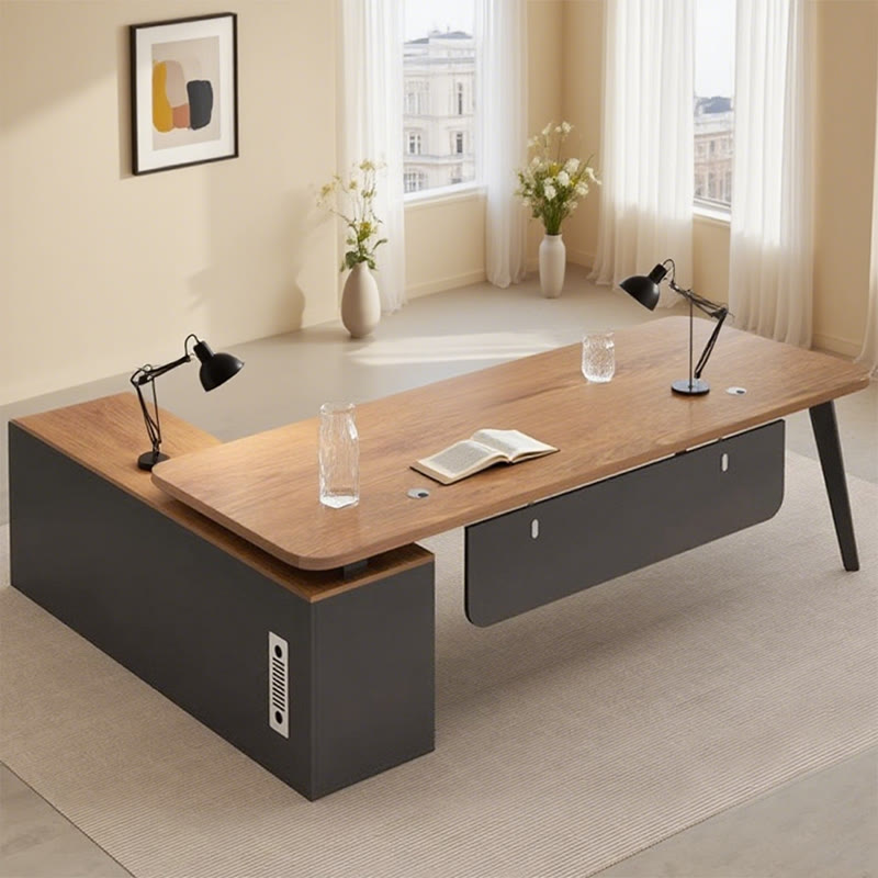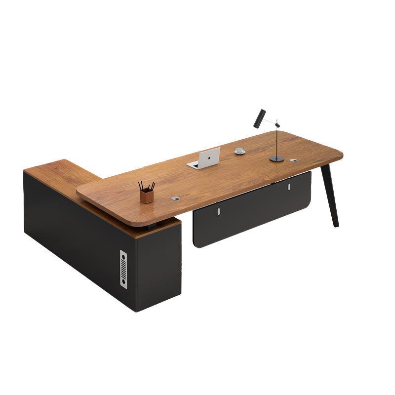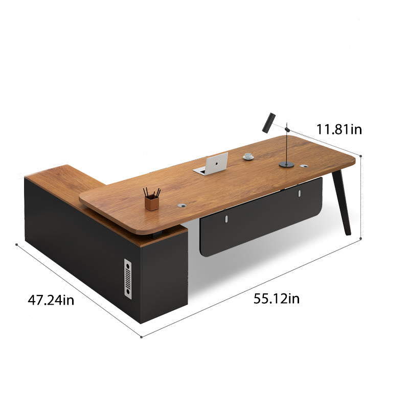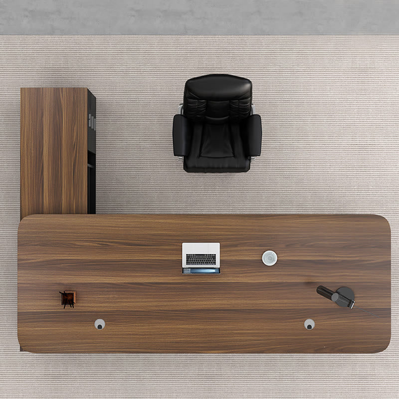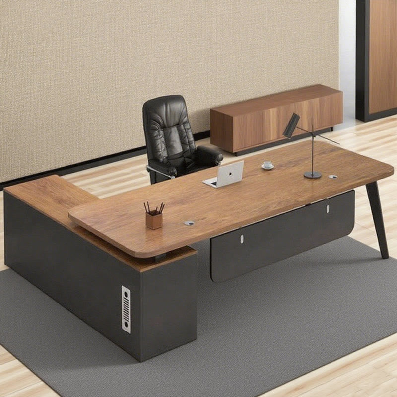 Iffhome Walnut Modern Desk With Storage Cabinet