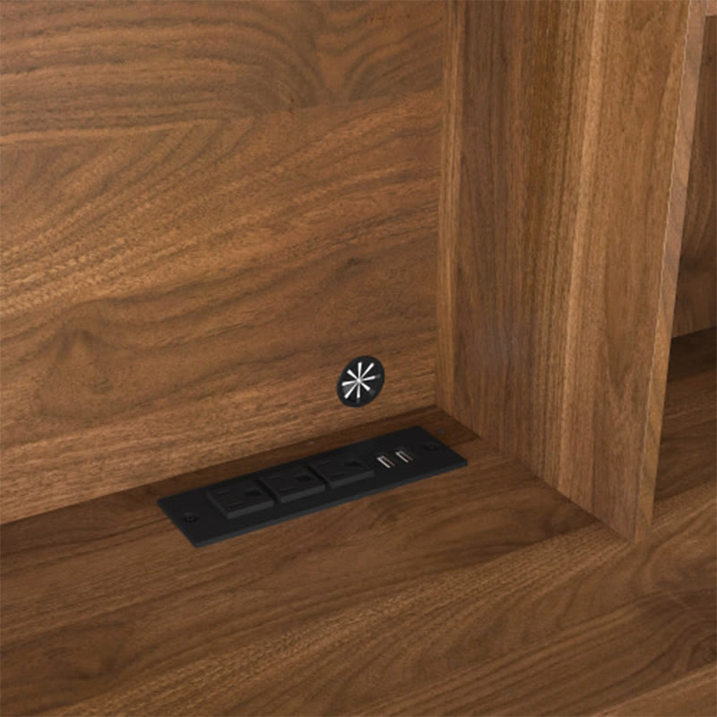 - Integrated Charging Ports: This desk has 2 power sockets and 2 USB ports for charging various devices like computers and phones, meeting modern office needs.