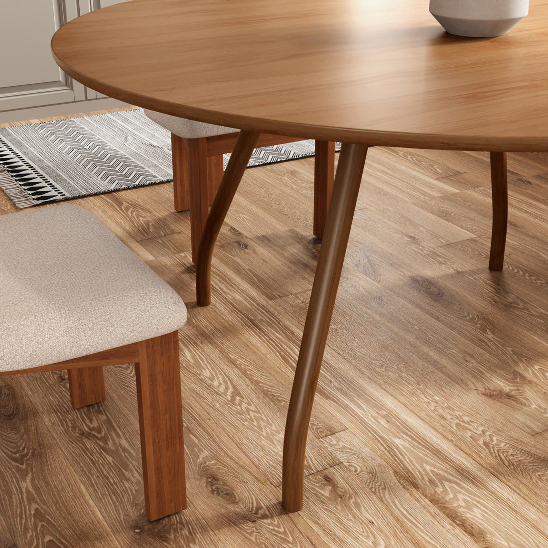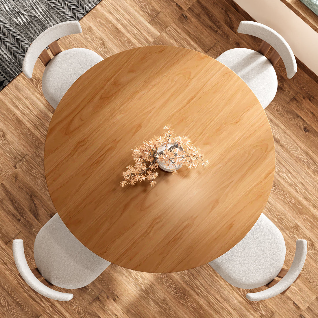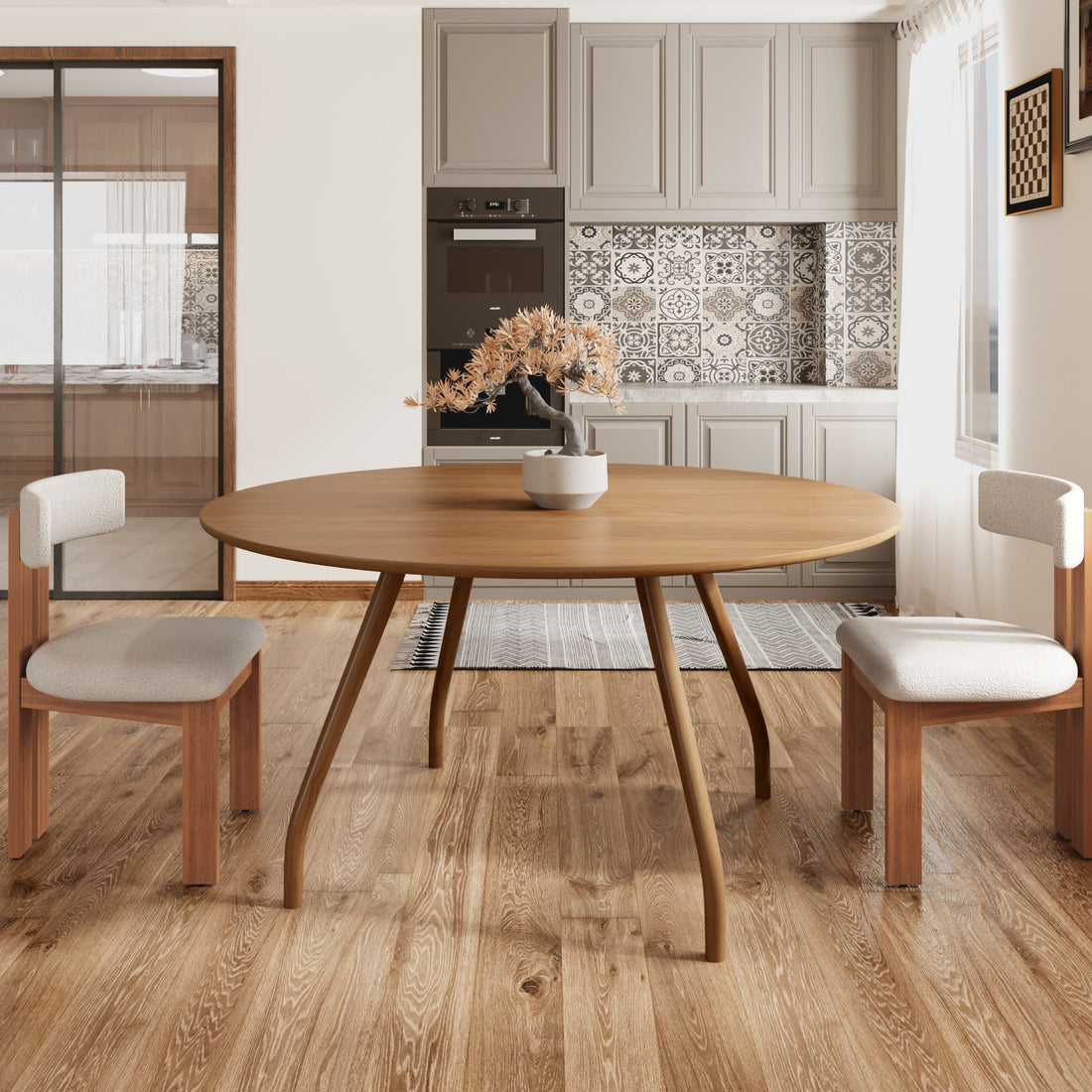 - Unique Design: The dining table features curved legs made via special bending tech, with dynamic lines. The smooth, round tabletop complements the legs, creating an elegant and minimalist look.
