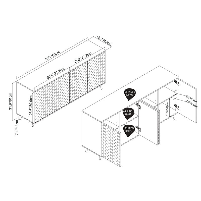 - Overall Dimension: W63" X D15.75" X H31.9"