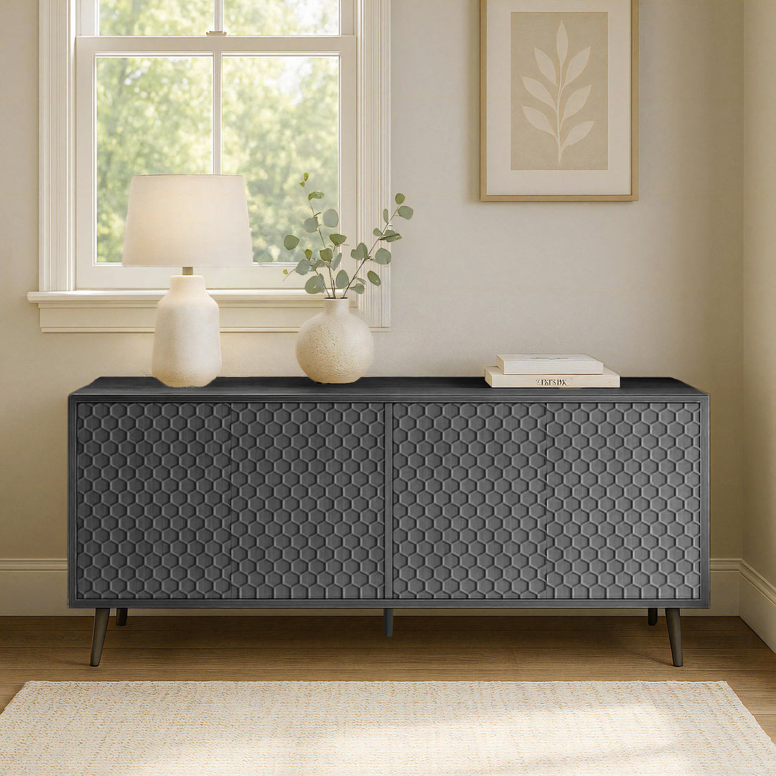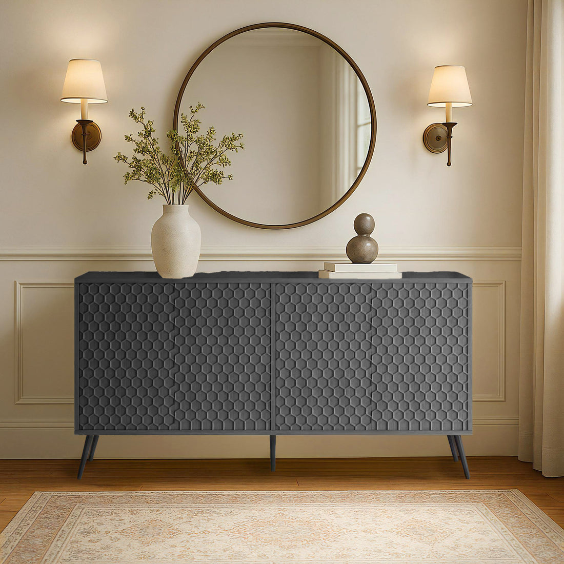 Iffhome Wooden Storage Cabinet With Honeycomb Hexagonal Pattern Doors